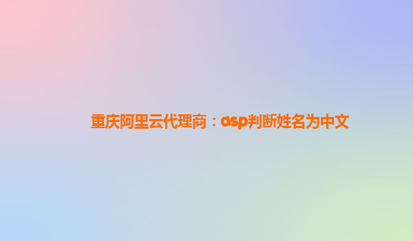 2025-02-25重庆阿里云代理商:ASP判断姓名为中文 随着互联网的普及和信息技术的发展,越来越多的企业和个人开始关注网站安全以及服务器的稳定性。阿里云作为国内领先的云计算平台,提供了多种解决方案以保障服务器的安全,防...