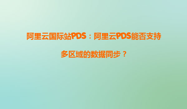 2025-10-01阿里云国际站PDS:阿里云PDS能否支持多区域的数据同步? 引言:数据同步的全球化需求 随着企业全球化业务的扩展,数据跨区域同步成为关键需求。阿里云国际站提供的PDS(PrivateDataService)作为企...