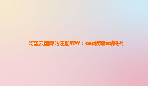 2025-02-23阿里云国际站注册教程:ASP读取SQL数据 一、阿里云国际站注册教程 在当今互联网时代,越来越多的企业和个人选择将自己的网站托管在云服务器上,而阿里云作为领先的云计算服务提供商,提供了强大的服务器资源和丰富...
