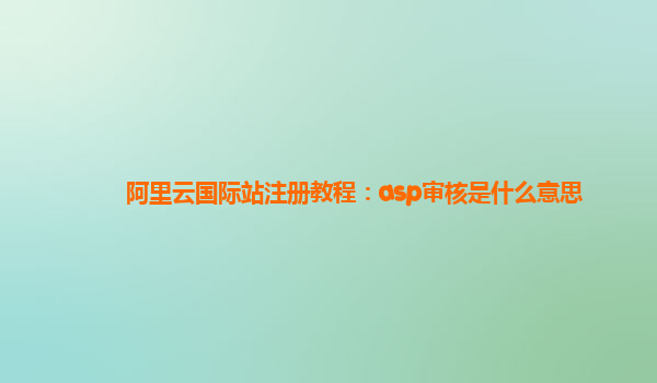 2025-02-23阿里云国际站注册教程:ASP审核是什么意思 一、什么是阿里云ASP审核? 在阿里云国际站注册过程中,用户可能会遇到一个叫做“ASP审核”的流程。ASP(ApplicationServiceProvider,应用服务提供商)审核,简单来说...