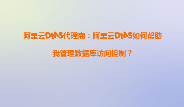 2025-09-30阿里云DMS代理商:阿里云DMS如何帮助我管理数据库访问控制? 引言:数据库访问控制的重要性 在数字化时代,数据库是企业核心资产的重要组成部分。无论是客户信息、交易记录还是业务数据,都需要严格的...