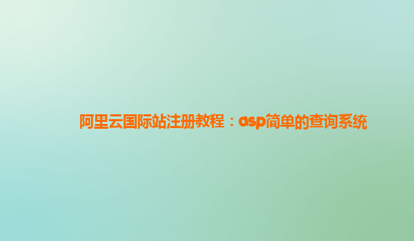 2025-02-21阿里云国际站注册教程:ASP简单的查询系统 一、引言 在当前的互联网时代,拥有一台高性能的服务器和强大的安全防护系统对企业和个人来说至关重要。阿里云作为领先的云计算平台,提供了丰富的云服务,适用于各种网站...