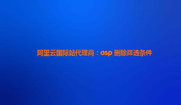 2025-02-19阿里云国际站代理商:ASP删除筛选条件 随着互联网技术的迅速发展,网络安全成为了每个企业面临的重要问题。为了确保网站和服务器的安全,越来越多的企业选择使用阿里云提供的各类解决方案。作为阿里云国际站的代理...