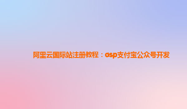 2025-02-15阿里云国际站注册教程:ASP支付宝公众号开发 一、阿里云国际站简介 阿里云国际站(AlibabaCloud)是阿里巴巴集团旗下的云计算平台,致力于为全球用户提供一站式云服务。随着互联网和电商行业的飞速发展,越来越多...
