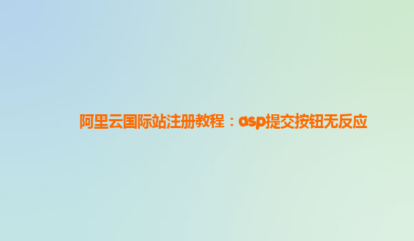 2025-02-12阿里云国际站注册教程:ASP提交按钮无反应解决方案 前言:为何ASP提交按钮无反应? 在使用阿里云国际站(AliyunInternational)注册时,许多用户遇到的一个常见问题是ASP提交按钮点击后没有任何反应。这个问题通常...