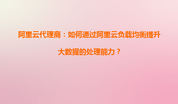 2025-09-16阿里云代理商:如何通过阿里云负载均衡提升大数据的处理能力? 引言:大数据时代下的负载均衡挑战 在数字化浪潮中,大数据处理已成为企业核心竞争力的关键。面对海量数据和高并发请求,如何通过阿里云负载均...