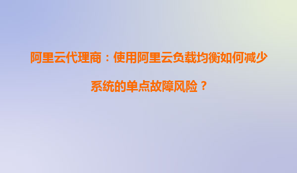 阿里云代理商:使用阿里云负载均衡如何减少系统的单点故障风险? 引言:负载均衡与高可用性的重要性 在现代互联网架构中,系统的高可用性和稳定性是企业数字化转型的核心需求。阿里云负载均衡(SL...