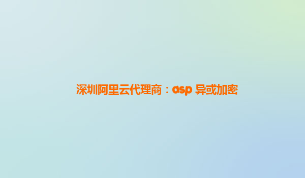 2024-10-28深圳阿里云代理商:ASP异或加密解决方案解析 1.引言 随着互联网的快速发展,信息安全的重要性逐渐提升,尤其是在数据传输和存储过程中,保障用户数据的安全显得尤为关键。深圳阿里云代理商为企业提供了多种基于ASP...