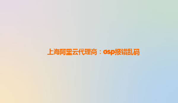 2024-10-15上海阿里云代理商:ASP报错乱码问题及相关服务器安全解决方案 一、ASP报错乱码问题概述 在使用阿里云服务器部署网站时,许多开发者遇到了ASP报错乱码的问题。ASP是一种广泛应用于Web开发的技术,但由于字符编码设置...