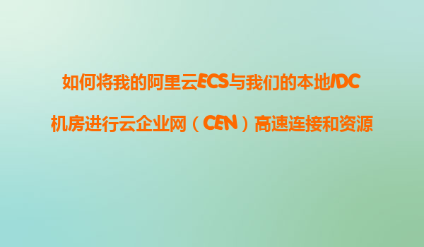 2025-11-10如何将阿里云ECS与本地IDC机房通过云企业网(CEN)实现高速连接与资源协同 一、云企业网(CEN)的架构价值与连接方案 云企业网(CloudEnterpriseNetwork,CEN)是阿里云提供的全球网络连接服务,能够实...