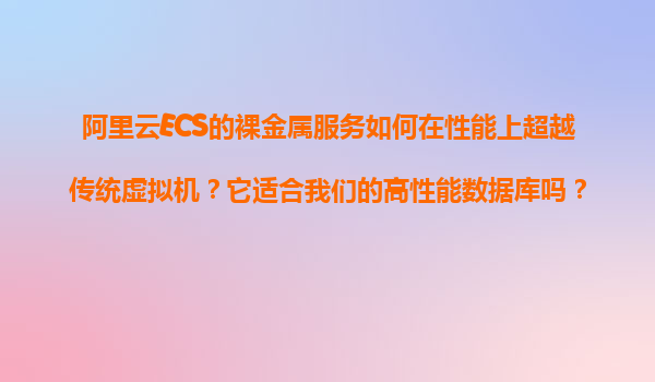 2025-11-10阿里云ECS裸金属服务如何在性能上超越传统虚拟机?它适合我们的高性能数据库吗? 引言:云计算的性能之争 随着企业数字化转型的加速,云计算服务的选择成为技术决策的关键。传统虚拟机(VM)因其灵活性和资...