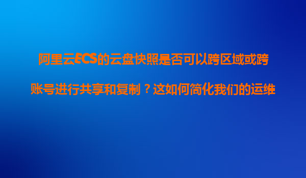 2025-11-09阿里云ECS云盘快照的跨区域与跨账号共享机制及其运维简化价值 引言:云盘快照的核心价值 在云计算时代,数据备份与灾难恢复是企业IT架构中不可或缺的环节。阿里云ECS的云盘快照功能作为一种高效的数据保护...
