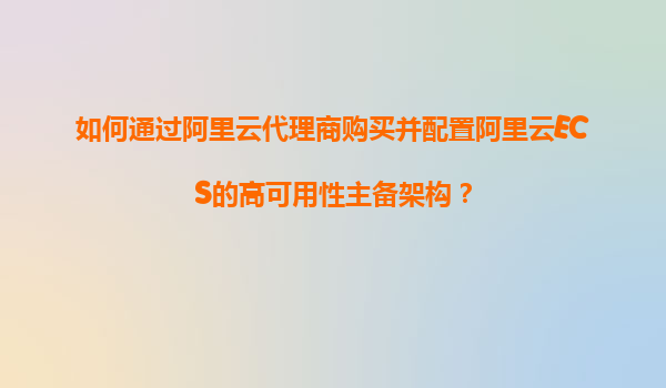 2025-11-05如何通过阿里云代理商购买并配置阿里云ECS的高可用性主备架构 一、高可用性架构的核心价值与需求分析 在数字化业务快速发展的今天,企业在线服务的高可用性已成为核心竞争力。阿里云ECS(弹性计算服务)的主备架构...
