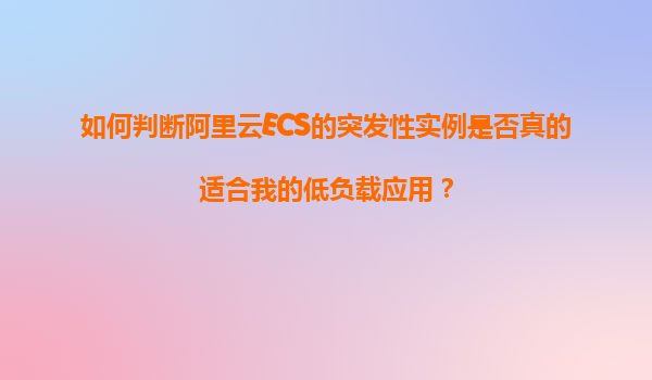 2025-11-05如何判断阿里云ECS的突发性实例是否真的适合我的低负载应用? 引言:理解突发性实例的核心特性 阿里云ECS突发性实例(BurstableInstance)是一种基于积分机制的弹性计算服务,主要面向间歇性低负载应用场...