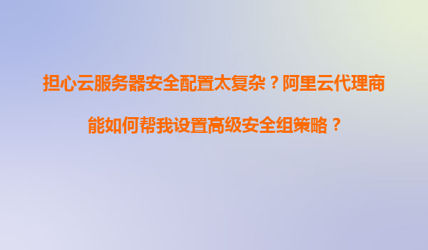2025-11-04担心云服务器安全配置太复杂?阿里云代理商能如何帮我设置高级安全组策略? 1.云服务器安全挑战:为何需要专业配置? 随着企业数字化转型加速,云服务器的应用场景日益广泛,但随之而来的安全风险也让许多用户感到...