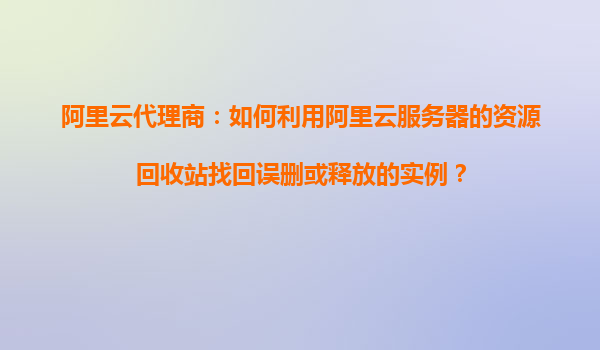2025-11-04阿里云代理商:如何利用阿里云服务器的资源回收站找回误删或释放的实例? 一、资源回收站的原理与功能 阿里云服务器的资源回收站是一种安全机制,用于临时存储用户误删除或释放的云服务器实例、磁盘、快照...