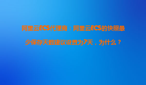2025-11-01阿里云ECS代理商:阿里云ECS的快照最少保存天数建议设置为7天,为什么? 一、引言:数据安全与快照的重要性 在云计算时代,数据安全是企业运营的核心保障。阿里云ECS(ElasticComputeService)作为国内领...
