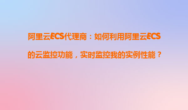 2025-10-31阿里云ECS代理商:如何利用阿里云ECS的云监控功能,实时监控我的实例性能? 一、云监控功能概述 阿里云ECS的云监控功能是一款强大的工具,可以帮助用户实时监控云服务器的性能指标,包括CPU使用率、内存占...