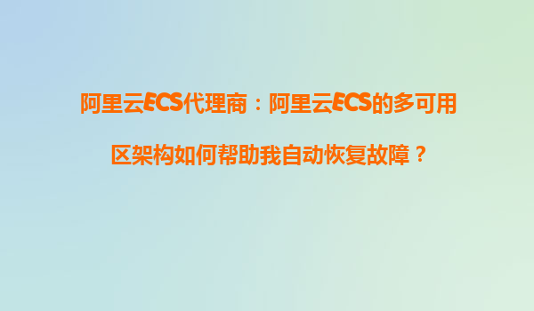 2025-10-31阿里云ECS代理商:阿里云ECS的多可用区架构如何帮助我自动恢复故障? 1.引言:云计算时代的高可用需求 在当今数字化时代,企业和服务提供商对计算资源的可用性要求越来越高。无论是电子商务平台、金融服务...