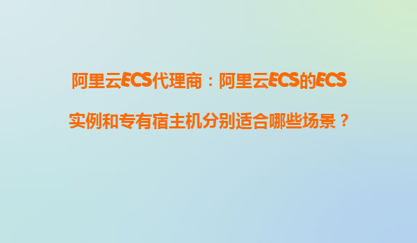 2025-10-31阿里云ECS代理商:阿里云ECS的ECS实例和专有宿主机分别适合哪些场景? 一、阿里云ECS实例的核心特性与适用场景 阿里云ECS(ElasticComputeService)是一种弹性计算服务,提供可伸缩的虚拟化计算资源。其...