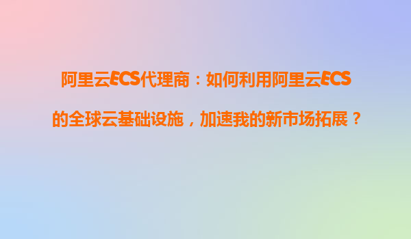 阿里云ECS代理商:如何利用阿里云ECS的全球云基础设施,加速我的新市场拓展? 引言:全球化布局需要强大的云基础设施支撑 在数字化经济时代,企业拓展新市场的关键往往依赖于高效、安全的IT基础设...