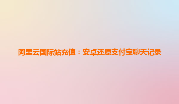 Tosummarizetherequest:TheUSERwantsanarticlewritteninChinesewithafocusonthethemeof"阿里云国际站充值:安卓还原支付宝聊天记录"(AliyunInternationalRecharge:RestoringAlipayChatRec...