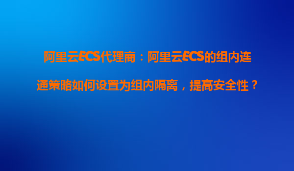 2025-10-29阿里云ECS代理商:阿里云ECS的组内连通策略如何设置为组内隔离,提高安全性? 引言:云服务器安全隔离的必要性 在企业上云的过程中,安全是首要考虑的关键因素之一。特别是当企业使用阿里云ECS(...