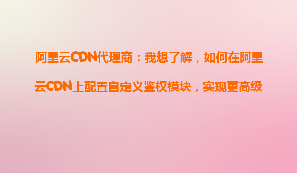 2025-10-26阿里云CDN代理商:如何在阿里云CDN上配置自定义鉴权模块,实现更高级的访问控制? 引言:为什么需要自定义鉴权模块? 随着互联网技术的快速发展,内容分发网络(CDN)已成为加速网站访问和保护数据安...