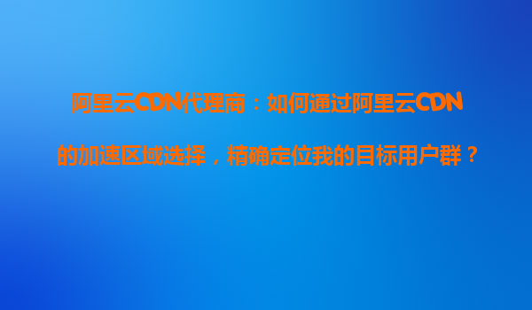2025-10-27阿里云CDN代理商:如何通过阿里云CDN的加速区域选择,精确定位我的目标用户群? 引言:CDN加速与用户定位的重要性 在当今数字化时代,网站和应用的速度直接影响用户体验和业务转化率。阿里云CDN作为全...