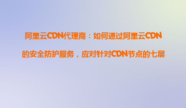 2025-10-26阿里云CDN代理商:如何通过阿里云CDN的安全防护服务,应对针对CDN节点的七层攻击? 引言 随着互联网的快速发展,CDN(内容分发网络)已成为提升网站访问速度和用户体验的重要工具。然而,CDN节点...