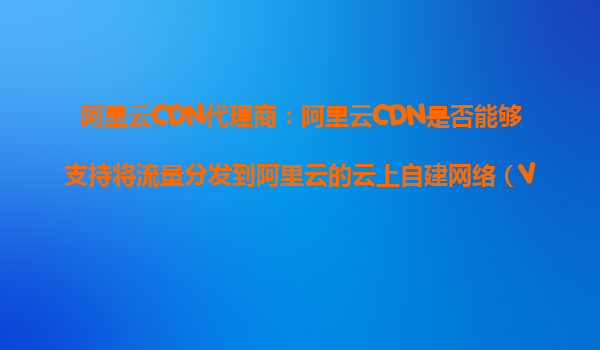 2025-10-27阿里云CDN代理商:阿里云CDN是否能够支持将流量分发到阿里云的云上自建网络(VPC)内的服务器? 一、阿里云CDN与VPC基础架构的融合能力 阿里云CDN的核心功能是通过全球分布的边缘节点加速内容分发,而对于...