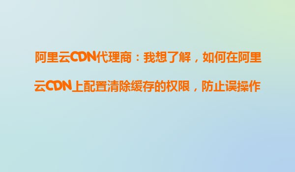 2025-10-27阿里云CDN代理商:如何配置清除缓存的权限以防止误操作 引言:缓存清除的风险与权限管理的重要性 在阿里云CDN(内容分发网络)的日常运维中,缓存清除是一项关键操作。它能够强制更新节点上的缓存内容,确...