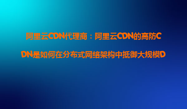 2025-10-26阿里云CDN代理商:阿里云CDN的高防CDN是如何在分布式网络架构中抵御大规模DDoS攻击的? 引言:DDoS攻击的威胁与高防CDN的价值 随着互联网的快速发展,分布式拒绝服务(DDoS)攻击已成为企业...