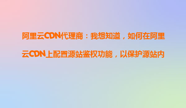 2025-10-25阿里云CDN代理商:如何在阿里云CDN上配置源站鉴权功能以保护源站内容安全 引言:源站鉴权的重要性 在当今的互联网环境中,内容分发网络(CDN)已成为加速网站访问速度的关键技术。然而,随之而来...