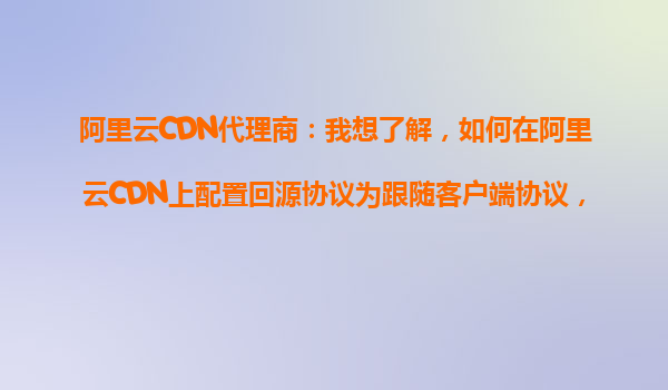 阿里云CDN代理商指南:灵活配置回源协议跟随客户端协议 一、回源协议跟随客户端协议的核心价值 在阿里云CDN的配置中,"回源协议跟随客户端协议"是一种能动态匹配用户请求协议的策略。当客户端以HTTP或HTTPS...