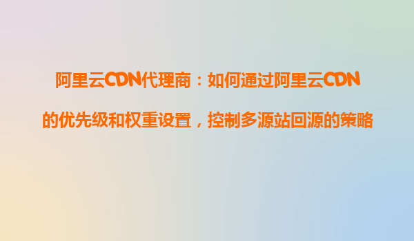2025-10-26阿里云CDN代理商:如何通过阿里云CDN的优先级和权重设置,控制多源站回源的策略? 引言:多源站回源的需求背景 在现代化的互联网架构中,企业往往需要部署多个源站来满足高可用性、负载均衡和灾备需求。阿...