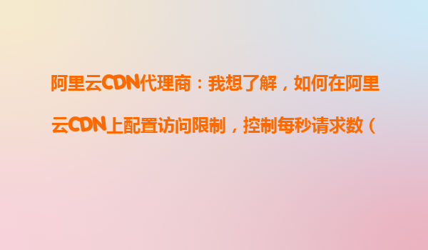 2025-10-26阿里云CDN代理商:如何在阿里云CDN上配置访问限制,控制每秒请求数(QPS) 一、控制QPS的重要性与应用场景 作为阿里云CDN代理商,我们经常遇到客户对访问流量控制的诉求。控制每秒请求数(QPS)是保障服务器...