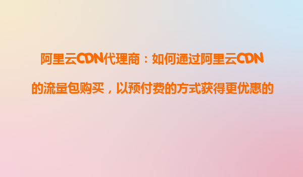 阿里云CDN代理商:如何通过阿里云CDN的流量包购买,以预付费的方式获得更优惠的价格? 引言:CDN在互联网加速中的核心价值 随着互联网应用的快速发展,内容分发网络(CDN)已成为提升网站访问速度、增强用户体验的...