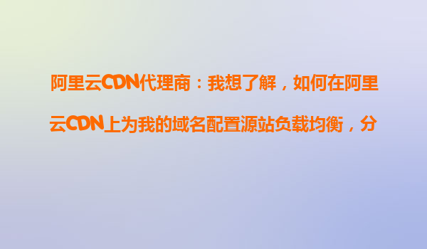 2025-10-25阿里云CDN代理商指南:如何为域名配置源站负载均衡以分担压力 一、源站负载均衡的重要性 在当今互联网环境中,流量激增和恶意攻击(如DDoS)已成为常态。阿里云CDN通过分发内容到边缘节点缓...