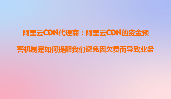 2025-10-25阿里云CDN代理商:阿里云CDN的资金预警机制是如何提醒我们避免因欠费而导致业务中断的? 引言 在当前的互联网时代,CDN(内容分发网络)已成为企业加速网站访问、提升用户体验的重要工具。阿里云...