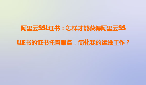 2025-10-23阿里云SSL证书:如何通过证书托管服务简化运维工作 一、引言:SSL证书的重要性与运维挑战 在当今互联网时代,SSL证书已成为保障网站安全、提升用户信任度的必备工具。对于企业而言,部署SSL证书不仅能...
