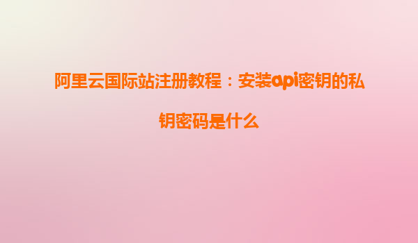 2025-03-22阿里云国际站注册教程:安装API密钥的私钥密码是什么 随着云计算技术的不断发展,越来越多的企业和开发者选择使用阿里云来搭建自己的服务器、应用防火墙及网络防护系统。本文将详细介绍如何在阿里云国际站注册并安...