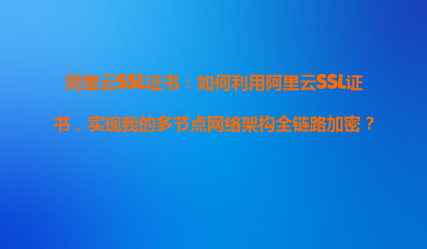 2025-10-21阿里云SSL证书:如何实现多节点网络架构全链路加密 一、全链路加密的背景与重要性 在数字化时代,数据安全成为企业发展的核心保障。多节点网络架构因其高可用性和扩展性被广泛采用,但同时也...