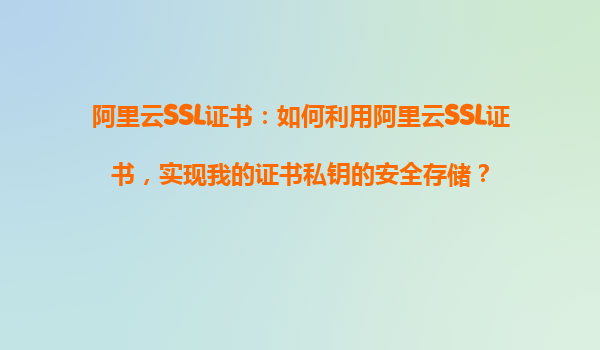 阿里云SSL证书:如何利用阿里云SSL证书,实现我的证书私钥的安全存储? 引言:SSL证书私钥保护的重要性 在互联网安全领域,SSL/TLS证书是保障数据传输加密的核心组件。而证书的私钥一旦泄露,可能导致...