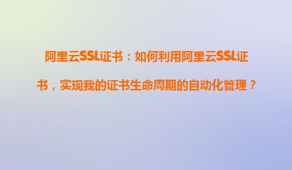 2025-10-21阿里云SSL证书:如何实现证书生命周期的自动化管理? 1.引言:SSL证书自动化管理的必要性 随着互联网安全要求的不断提高,SSL证书已成为网站安全的基础保障。然而,证书的申请、部署、续期等过程繁琐...