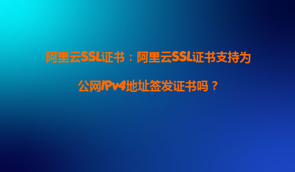 2025-10-21阿里云SSL证书:阿里云SSL证书支持为公网IPv4地址签发证书吗? 引言:SSL证书与公网IP的关系 在互联网安全领域,SSL证书是保障数据传输安全的核心工具之一。传统上,SSL证书通常颁发给域名(如example....
