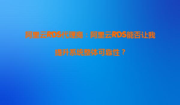 2025-10-07阿里云RDS代理商:阿里云RDS能否让我提升系统整体可靠性? 引言:数字化时代下的系统可靠性挑战 在当今高度数字化的商业环境中,系统可靠性已成为企业运营的核心竞争力之一。无论是电子商务平台、金融...