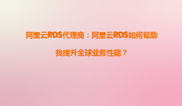 2025-10-07阿里云RDS代理商:阿里云RDS如何帮助我提升全球业务性能? 引言:全球化业务的数据挑战 在全球化竞争日益激烈的今天,企业需要高效、稳定且安全的数据库服务来支撑其业务扩展。阿里云RDS(Relational...