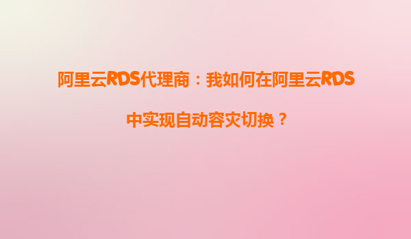 2025-10-07阿里云RDS代理商:我如何在阿里云RDS中实现自动容灾切换? 一、引言:自动容灾切换的重要性 在当今数字化时代,数据库的高可用性和容灾能力是企业业务连续性的关键保障。阿里云RDS(RelationalDatabaseSe...