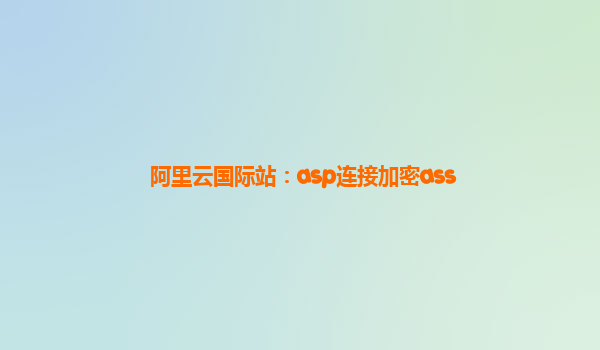 2025-03-03阿里云国际站:ASP连接加密ASS解决方案 随着网络安全威胁的日益增多,保护网站和服务器的安全已成为每个企业必须重视的问题。尤其是在阿里云国际站这一全球云服务平台上,如何保护ASP应用程序的连接不被恶意攻击,...